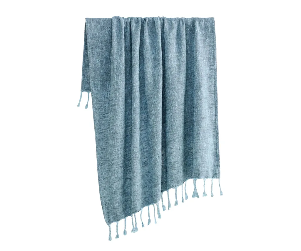 Add a touch of texture and cosiness to your home decor with this woven throw blanket. The deep blue colour will enhance the warmth of any room, while the braided, knotted tassel trim will bring a playful vibe to your sofa or bed.