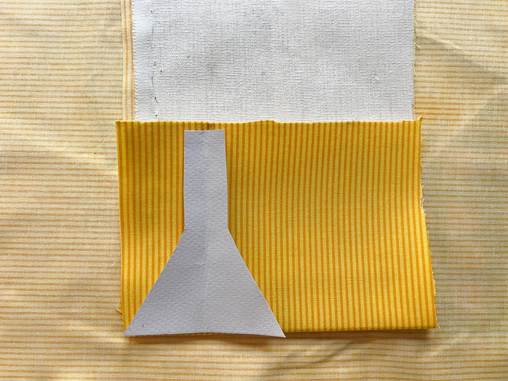 For the body, cut a 50 x 50cm square of interfacing, then lay it sticky side up on the ironing board. Lay fabric on top of the interfacing, right side up. Use a hot iron to bond fabrics. Fold fabric in half with interfacing face out, then iron a crease along fold.